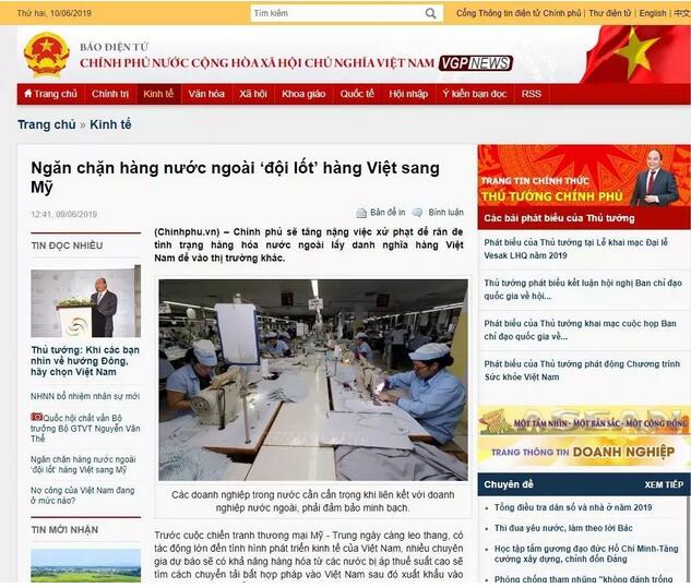圖|越南政府門戶網(wǎng)站 英國路透社10日引述越南海關(guān)前一天發(fā)表的聲明稱,該部門已在中美貿(mào)易爭端持續(xù)期間發(fā)現(xiàn)幾十起中國產(chǎn)品通過“原產(chǎn)地造假”和“非法轉(zhuǎn)運(yùn)”活動,以躲避美國對中國產(chǎn)品加征的關(guān)稅。 越南海關(guān)稱將對此類行為進(jìn)行嚴(yán)查并重罰。美國彭博社6月10日稱,自美中貿(mào)易緊張今年升級以來,越南對美出口正在激增。盡管有證據(jù)顯示其中一些增量歸功于供給鏈向越南轉(zhuǎn)移,但分析人士對這些激增到底在多大程度上屬于合法出口提出疑問。 越南海關(guān)在聲明中稱,原產(chǎn)地造假和非法轉(zhuǎn)運(yùn)商品大多發(fā)生在紡織品、海鮮、農(nóng)產(chǎn)品、瓷磚、蜂蜜、鋼鐵、鋁和木制品等行業(yè)。 越南政府發(fā)現(xiàn)的欺詐案例包括中國產(chǎn)品的包裝被改為“越南制造”,偽造原產(chǎn)地證書,再出口到美國。聲明援引的一個例子是,美國海關(guān)近期發(fā)現(xiàn)一家越南企業(yè)售往美國的“越南產(chǎn)”膠合板實(shí)際為中國產(chǎn)。 越南國會經(jīng)濟(jì)委員會常務(wù)委員Do Van Sinh說,允許被虛假貼牌的中國產(chǎn)品流入美國,越南可能遭到美國懲罰。聲明稱,越南海關(guān)正在制定一種能更好地識別并懲罰有關(guān)違規(guī)企業(yè)的程序。 就在上個月,美國財政部將越南列入“匯率操縱國”的觀察名單,換句話說,越南或許已經(jīng)受到美國的嚴(yán)格審查。 越南是迄今為止中美貿(mào)易戰(zhàn)最大的贏家 根據(jù)美國人口普查局最新數(shù)據(jù)顯示,今年第一季度,越南對美出口同比激增40.2%。其對美出口總額將有望超越意大利、法國、英國和印度等經(jīng)濟(jì)體。