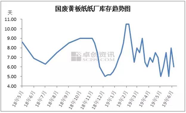 從監(jiān)測市場表現(xiàn)來看,廢紙消費(fèi)量同比下降的主要原因是成品紙需求的減少,次要原因是成品紙和廢紙漿進(jìn)口量的增長。而成品紙需求之所以減少,一是因?yàn)槌善芳埻稒C(jī)需求的退場,二是因?yàn)槌善芳垊傂孕枨蟮南陆怠?/p> 另一方面,紙廠廢紙庫存水平下降。2019年,即便是在外廢進(jìn)口快速減量的背景下,紙廠常備廢紙庫存水平仍低于2018年。據(jù)卓創(chuàng)資訊監(jiān)測數(shù)據(jù)顯示,2019年3-5月,紙廠廢紙庫存水平同比下降20.93%至6.80天。