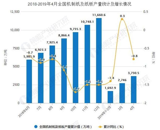 2019年4月全國機制紙及紙板產量累計超3700萬噸