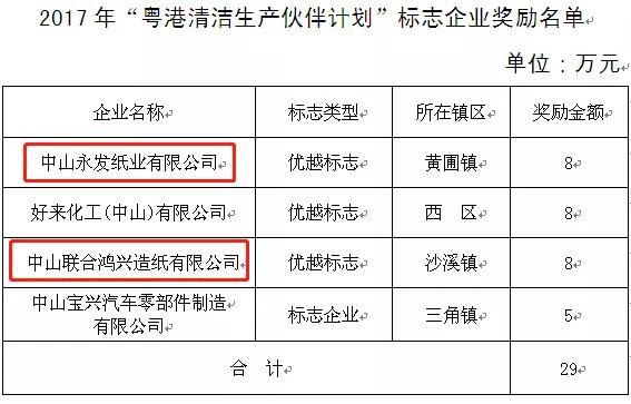 導(dǎo)語(yǔ):7月1日,廣東省中山市工業(yè)和信息化局公示了關(guān)于2019年打好污染防治攻堅(jiān)戰(zhàn)專項(xiàng)資金(綠色發(fā)展用途)項(xiàng)目擬補(bǔ)貼企業(yè)名單,名單中包括中山永發(fā)紙業(yè)有限公司、中山聯(lián)合鴻興造紙有限公司兩家造紙企業(yè)。