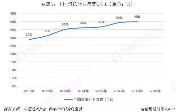從行業整體的產銷量數據來看,經過2010年以來的環保政策去產能之后,造紙行業的CR10從2011年的28.70%逐步上升到2017年的39.95%,而美國造紙行業在經歷環保立法去產能及行業并購之后,CR10已經達到了90%左右。