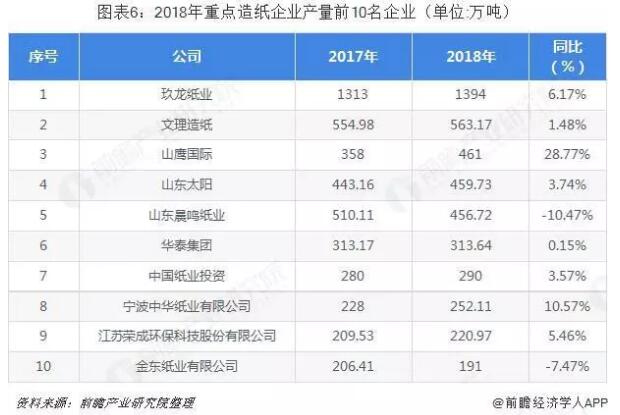 另外,從中國造紙協會公布的數據來看,中國重點造紙業企業中玖龍紙業產量最大,超過1300萬噸。