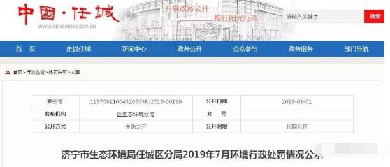 8月1日,山東省濟寧市生態(tài)環(huán)境局任城區(qū)分局公布2019年7月環(huán)境行政處罰情況明細表,其中就包括濟寧市萬泰紙業(yè)有限公司,其罰款金額最高,罰款金額為40萬元。