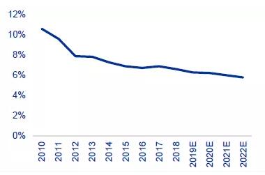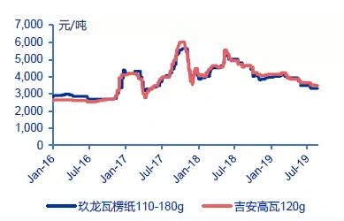 (數(shù)據(jù)來源:中國造紙協(xié)會(huì)) 宏觀經(jīng)濟(jì)承壓,需求持續(xù)低迷。2018 年 4 月以來國內(nèi)社零額總額同比增速保持個(gè)位數(shù)增長,且逐月呈現(xiàn)階梯式回落趨勢。加之2019 年紙價(jià)持續(xù)下跌,下游二級(jí)廠和三級(jí)廠庫存較往年顯著降低,紙廠需求明顯承壓。 中國經(jīng)濟(jì)增速進(jìn)入換擋期