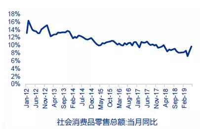 (數(shù)據(jù)來源:國家統(tǒng)計(jì)局) 2018 年 4 月以來社零額增速均在個(gè)位數(shù)徘徊
