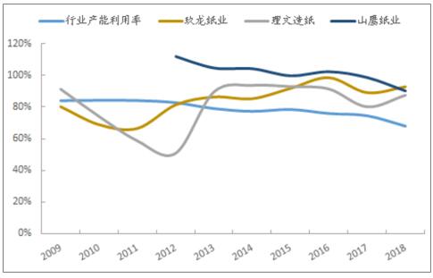 圖表來源:東吳證券研究所 龍頭企業的產能利用率高于行業。上一輪周期中龍頭企業的產能利用率較行業平均基本持平;2016年供給側改革以來龍頭企業盈利優勢日益鞏固,雖然產業的表觀產能利用率略有下降(中小灰色產能出清導致有效供給縮減)、龍頭企業的產能利用率在紙種供應穩定、下游客戶有粘性的背景下持續提升至90%以上水平,市場份額實質加速向龍頭企業集中。 行業及龍頭箱板瓦楞產能利用率