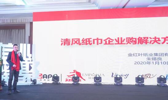 APP辦公用紙市場經理陳薇女士分享 《APP生活用紙“企業購”》解決方案 APP生活用紙和“清風”品牌在消費者心中有著卓越的影響力,2020年APP生活用紙將目光投向廣闊的企業購商用市場,為廣大合作伙伴帶來更多商機。會議期間,金光集團APP生活用紙商用大客戶總監朱錫良先生作出精彩分享。