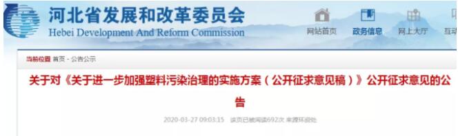 為有序有效治理河北省塑料污染,建立健全塑料制品管理的長效機制,3月27日,河北省發展和改革委員會官網發布《關于進一步加強塑料污染治理的實施方案(公開征求意見稿)》,明確了塑料制品禁限名錄。