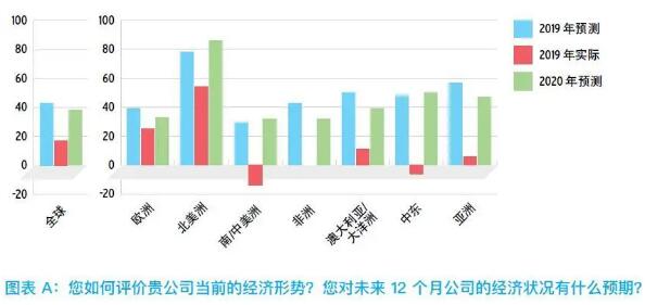 雖然從圖表 D 中可以看出,供應商在 2017 年確實有些過度興奮,但近年來,他們在預測時已經更為現實,也就是說,他們不會過于樂觀或悲觀。然而,值得注意的是,有許多印刷商和供應商的全球經濟實際信心報告與去年同期非常接近。其模式很明顯。首先,可以看出,在經受 2007 年和 2008 年全球經濟衰退以及數字媒體影響的雙重沖擊之后,人們對經濟的信心正在緩慢但穩定地復蘇。但是從 2017 年開始,對經濟的預期不斷下降,主要是因為人們對政治不穩定、全球貿易戰爭等更廣泛的社會經濟問題愈發關注。此外,即使預期的恢復速度可能相對較快,冠狀病毒疫情的爆發也無疑是加重了這次經濟放緩。 各市場全球經濟的信心隨時間的變化 樂觀與悲觀百分比凈差值