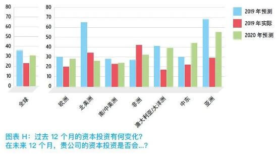 向數字印刷的過渡緩慢但穩定,雖然傳統(非數字)印刷工藝仍舊是大部分印刷商的主要現金流來源,但在大部分領域,數字技術都呈現了更快速的增長(圖表 G)。包裝行業則是例外,柔版和單張紙膠印依然持續繁榮。 2019 年度印刷商資本支出(按地區) 樂觀與悲觀百分比凈差值