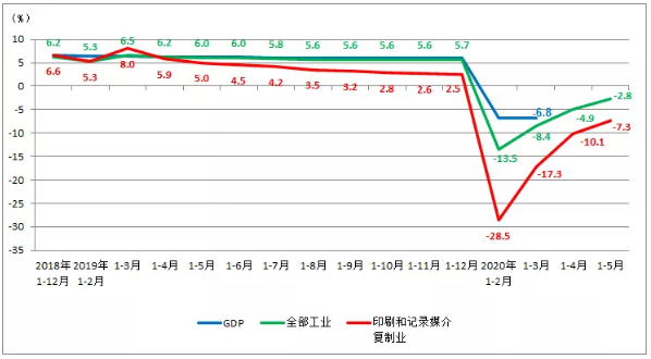 表1:部分行業主營業務收入年度增長率 具體來看,農副食品加工業、食品制造業等食品類行業,延續穩定回升態勢,并成功在5月份累計增速轉正。酒、飲料和精制茶制造業,增速依然相對低迷。 紡織業、服裝服飾、皮革制品制鞋業等,恢復非常緩慢,內需+外貿市場的疊加壓力,使這些行業回升艱難。 造紙和紙制品業11.5%的降速,低于全部工業平均水平,也低于印刷業的水平,其恢復產能的努力尚未達到理想狀態。 汽車業1-5月主營業務收入增長率-13.6%,雖然仍遠低于全部工業的平均水平,但其降幅收窄了7個百分點,收窄幅度高于大多數行業。 醫藥制造業、計算機等電子設備制造業,遠遠好于全國工業平均水平。尤其計算機等電子設備制造業,增速已經轉正,成為此一輪經濟復蘇的動力引擎之一。 近期,國內部分地區疫情形勢有所變化,對經濟的影響尚有不確定性;而境外疫情對世界經濟的巨大沖擊仍發展演變,外部風險挑戰明顯增多。對印刷行業而言,回歸常態化增長,仍需足夠的耐心,更需付出巨大的努力。