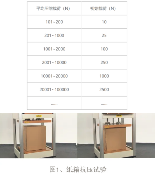 表2.瓦楞紙板的三種波形優(yōu)劣勢 2、瓦楞紙箱的長、寬、高 在瓦楞用紙的材質(zhì)與楞形、波形一致的情況下,成品紙箱的長寬高設計與其抗壓強度有著緊密的聯(lián)系。根據(jù)經(jīng)驗,瓦楞紙箱的長寬之比在1~1.8之間,對其抗壓強度的影響最小,僅為±5%,當二者比例為1.5左右時,紙箱的抗壓強度最高[1]。 此外,紙箱的高度不宜過高,應控制在350~650mm之間[2],當高度增加時,不穩(wěn)定性驟增,抗壓強度也會隨之下降。因此在設計紙箱的尺寸時,宜綜合考量三方比例,既保障紙箱具有良好的抗壓強度,又能減少成本的浪費。 3、印刷工藝 在重視品牌宣傳的今天,瓦楞紙箱的印刷設計越來越受到重視,殊不知,印刷工藝在一定程度上也會造成成品紙箱抗壓強度的下降。主要體現(xiàn)在兩個方面: (1)印刷壓力的影響。傳統(tǒng)印刷過程會對瓦楞紙板施以一定的壓力,若壓力過大則易將瓦楞壓潰,使其失去原有的抗壓功能; (2)油墨的浸潤影響。油墨是印刷工藝不可或缺的組成部分,但它會對瓦楞紙板表面產(chǎn)生浸潤作用,嚴重降低紙箱的抗壓強度。當印刷面積大以及套印次數(shù)多的時候,則會使這種浸潤作用更加明顯。 三、環(huán)境因素——濕度影響 根據(jù)上述介紹,瓦楞紙箱因采用吸水性很強的纖維材料,極易吸收水分,引起抗壓強度的下降。除了加工過程中對材料含水量的控制外,生產(chǎn)環(huán)境、存放環(huán)境、使用環(huán)境、天氣、等因素都有可能造成瓦楞紙箱的高濕環(huán)境。 根據(jù)研究資料的分析,相對濕度從40%上升到60%,抗壓強度下降的幅度最大,達到17%;其次是相對濕度80%至90%區(qū)間,抗壓強度下降了10%;下降幅度最小的是60%至80%區(qū)間,為7%[3]。因此,可以看出,瓦楞紙箱周圍的濕度越大,抗壓強度的損失也就越大。 四、瓦楞紙箱抗壓強度的精確測算 之前已經(jīng)介紹過經(jīng)典的抗壓強度計算公式——凱利卡特公式,雖然精確度已獲公認,但不可否認,這是一個基于靜態(tài)因素的測算公式,無法反映出成型工藝、印刷設計和環(huán)境因素的動態(tài)影響,經(jīng)此公式測算的抗壓強度與實際仍有一定差距。因此,現(xiàn)代企業(yè)更多的是利用紙箱抗壓試驗機進行精確測量。標準GB/T4857.4-2003《包裝運輸包裝件基本試驗》規(guī)定了抗壓強度的測試方法,下面結(jié)合XYD-15K紙箱抗壓機進行簡單介紹。 抗壓試驗的基本原理是將試驗品放置于紙箱抗壓機的壓板之間進行加壓,直至試樣損壞或達到預定載荷和位移值時為止。由此衍生為三種抗壓試驗模式,即“定壓力測形變”、“定形變測壓力”和“壓潰”。具體方法如下: 1、試樣溫濕度預處理。將樣品箱置于23℃,50%RH的環(huán)境下4小時進行試樣調(diào)節(jié)。 2、將預處理后的試樣封裝好,放置在紙箱抗壓機的下壓板中心。若采用“定壓力測形變”模式,則需設置預定壓力(“定形變測壓力”模式則需預設形變量)、初始載荷值等參數(shù),并調(diào)整高度參數(shù)至試樣高度值,其中初始載荷值的設定是為了使上壓板與試樣達到充分接觸,可參照表3進行設置。啟動試驗,上壓板在系統(tǒng)的控制下以適當?shù)乃俣认蛳逻\行,當試樣所受的壓力達到初始載荷值時,位移量自動清零,當壓力繼續(xù)增大至設定壓力值時,儀器自動結(jié)束試驗,并顯示試樣的變形量。而“壓潰”模式則無需壓力和位移量設置,試樣所承受的壓力值曲線不斷上升,在試樣壓潰的節(jié)點達到峰值后開始下降,當壓力值降到最大值的70%時,自動結(jié)束試驗。 表3初始載荷值