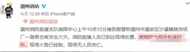 8月22日上午,廣東省潮州市潮安區(qū)沙溪鎮(zhèn)一紙廠的簡易倉庫發(fā)生火災(zāi)。接到報警后,潮安區(qū)消防救援大隊迅速調(diào)派6輛消防車,36名消防員趕赴現(xiàn)場,同時調(diào)派周邊金石、龍湖、浮洋等鎮(zhèn)專職消防隊到場協(xié)助處置。