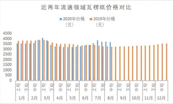 根據(jù)國家統(tǒng)計(jì)局每月三次對全國流通領(lǐng)域9大類50種重要生產(chǎn)資料市場價格的監(jiān)測,今天小瓦帶著大家將林產(chǎn)品領(lǐng)域中,瓦楞紙及紙漿2019-2020年8月中旬的價格進(jìn)行一番盤點(diǎn)和對比。 瓦楞紙 2020年1月至今,瓦楞紙價格最高為3月上旬的4111.1元/噸,最低為5月上旬的3195.4元/噸,落差915.7元/噸。具體漲跌明細(xì)如下。