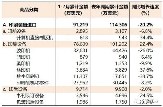 本期數據觀察 2020年1月—7月,國內印刷品、印刷裝備、印刷器材進出口總值較去年同期下降29.4%。其中,進口下降11.9%,出口下降33.9%。由于出口下降遠大于進口,國內印刷相關產業商品進出口順差幅度與去年同期相比大幅收窄(-41.6%)。 本期,國內印刷品進出口較去年同期下降32.5%。其中,進口下降6.5%,出口下降36.7%。與上期相比,國內印刷品進口和出口的下降幅度分別收窄了0.7個百分點和1.6個百分點。 本期,國內印刷裝備進出口下降幅度為20.4%,且進口下降的幅度(20.2%)與出口下降的幅度(20.6%)頗為接近。膠印機(下降26.0%)、數字印刷機(下降33.7%)是造成印刷裝備進口下降的主要因素,而數字印刷設備出口下滑幅度繼續擴大(24.8%),影響印刷裝備整體出口狀況改善。同期,包裝印后設備進口繼續保持增長(13.5%),而包裝印后設備出口也開始恢復增長(3.8%)。 本期,國內印刷器材進出口下降13.7%,而且其進口和出口下降幅度還在擴大。其他印刷油墨和水性噴墨墨水進口大幅度下降拖累印刷器材進口局面改善,而國內印刷器材各子項出口全線延續下降態勢,且降幅還在擴大。 鑒于國內外新冠肺炎疫情防控形勢的差異,國內印刷品、印刷裝備、印刷器材國際貿易出口下降幅度大于進口下降幅度的局面還將維持一段時間。本期海關進出口數據顯示,印刷品進出口下降幅度在收窄,而印刷裝備和印刷器材進出口下降幅度還在擴大。這種現象不僅可以理解為,印刷裝備、印刷器材制造企業對市場波動的反應的時間差,也可以看作是此次疫情加速印刷行業(特別是商業印刷領域)的產能整合背景下,國內印刷裝備和印刷器材市場結構的調整。無論如何,這意味著國內印刷裝備和印刷器材制造業的復蘇時間會更長! (本文作者為中國印刷及設備器材工業協會副秘書長)