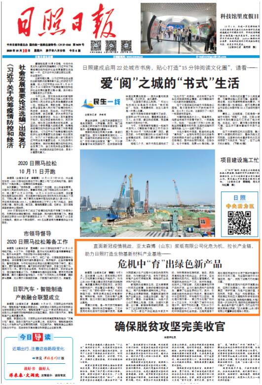 直面新冠疫情挑戰,亞太森博(山東)漿紙有限公司化危為機,拉長產業鏈,助力日照打造生物基新材料產業基地———