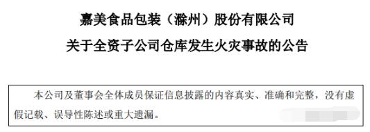 目前,事故具體原因及造成的損失正在調查核實中,本次事故未造成人員傷亡。本次火災主要受損資產已向保險公司投保了財產保險,嘉美包裝已經向保險公司報案并配合保險公司進一步勘查財產損失情況。 秋季來臨,風干物燥。業內各大企業務必要注重消防安全,防患于未然。畢竟,“企業要效益,安全是第一”。