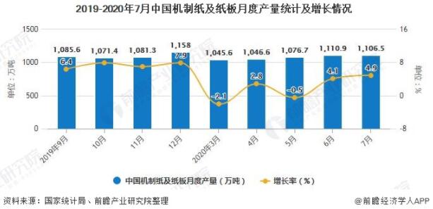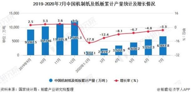 2020年1-7月中國機制紙及紙板累計產量超6800萬噸