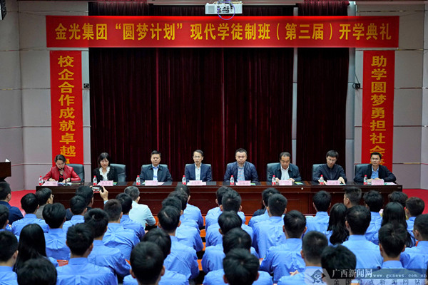 據(jù)了解,“圓夢計劃”現(xiàn)代學徒制班開辦至今已經(jīng)三年,第一屆學員已經(jīng)進入金光集團各崗位頂崗實習。該計劃旨在助力教育扶貧,助學圓夢,培育社會卓越人才,金光紙業(yè)(中國)投資有限公司與廣西工業(yè)職業(yè)技術學院定向、訂單培養(yǎng)高素質企業(yè)人才,專業(yè)方向為電氣自動化技術和機電一體化技術,同時融入制漿造紙技術專業(yè)學習。學生畢業(yè)后直接進入金光紙業(yè)(中國)投資有限公司所轄企業(yè)所在地就業(yè)。