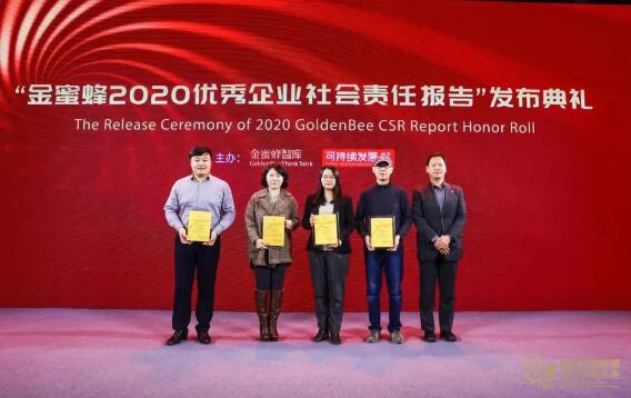 12月3日,第十三屆中國企業社會責任報告國際研討會在北京召開。本屆研討會以“責任溝通創造價值” 為主題,由可持續發展經濟導刊、中國可持續發展工商理事會、金蜜蜂智庫主辦,瑞典駐華使館CSR中心聯合主辦,TüVnord戰略合作,荷蘭王國駐上海總領事館、責揚天下品牌傳播支持。研討會上同期發布了“金蜜蜂2020優秀企業社會責任報告榜”,《亞太森博2018-2019可持續發展報告》從1700余份評估報告中脫穎而出,獲評“金蜜蜂2020優秀企業社會責任報告·外商及港澳臺企業”。