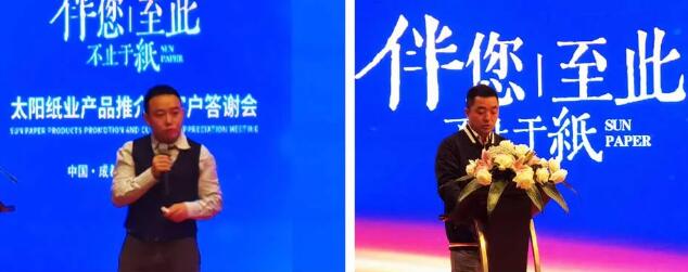 12月9日,“伴您至此 不止于紙”太陽紙業(yè)產(chǎn)品推介暨客戶答謝會在成都香格里拉大酒店隆重召開。山東太陽控股集團有限公司董事長李魯,太陽紙業(yè)市場營銷服務(wù)部門領(lǐng)導(dǎo)與華西區(qū)80余位文化用紙客戶出席會議。