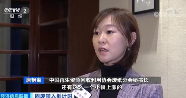 作為國內(nèi)紙廠原料的有效補充,進口廢紙的減少,直接帶來國內(nèi)廢紙價格的大幅上漲,以一級廢舊箱板紙為例,2017年前基本長期穩(wěn)定在1200元/噸左右,而2017年開始出現(xiàn)波動上漲,目前價格基本維持在2000元/噸以上的水平。 中國再生資源回收利用協(xié)會廢紙分會秘書長唐艷菊:“從今年9月開始到現(xiàn)在,從2000元/噸左右漲到了2300元/噸,由于明年1月1日開始全面禁止進口廢紙了,很多的紙廠也會去調(diào)整增加原料庫存時間、庫存量,所以近期會有小幅上漲!