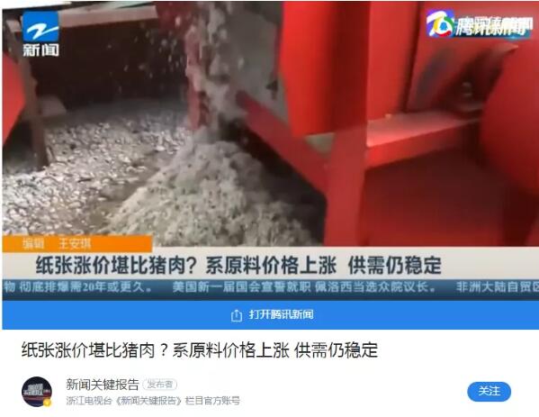 12月以來,紙張漲價堪比豬肉的消息甚囂塵上。 紙企掀起漲價潮 年關將至,吃的用的都在沖KPI。繼“豬肉價格反彈”上熱搜后,近期“全國多地紙巾漲價”也沖上熱搜。 然而不僅僅是紙巾漲價的消息在影響人們生活,包裝用紙的漲價也在牽動著紙箱老板們的心。 早在2020年12月結束之前,紙張漲價的消息就一直源源不斷。其范圍蔓延南北,幾乎全國都受到波及,部分地區(qū)甚至經歷了2020年最后一周的“突擊”漲價。 及至新年,紙板漲價函再次紛至沓來,直接開啟了2021年第一輪紙板漲價潮。 文化紙亦齊刷刷漲價。2020年11月份,包括APP、太陽、晨鳴、華泰等在內的龍頭紙企陸續(xù)發(fā)出漲價函,對自家文化紙?zhí)醿r200元/噸,2020年12月份起開始執(zhí)行。自2020年8月起,紙企頻繁發(fā)布漲價函,一些銅版紙產品至今已累計提價約600-800元/噸。 受升級版“限塑令”影響,白卡紙價格亦反彈明顯。 紙張、紙巾為何紛紛漲價? 小編根據關鍵詞查找了一番,很快找到了浙江電視臺的《紙張漲價堪比豬肉?系原料價格上漲 供需仍穩(wěn)定》。