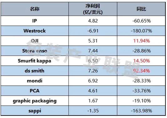 此外,從營收同比情況來看,除了graphic packaging實現營收同比增長6.49%的成績,其它企業營收數據皆有所下降,其中下降幅度最大的要數sappi企業,年營收同比下降近20%。