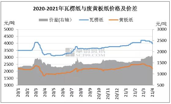 3月份以來,國內(nèi)廢舊黃板紙價格的快速反轉(zhuǎn),令市場有些措手不及。截止4月2日,卓創(chuàng)資訊統(tǒng)計的國廢A級黃板紙市場均價為2192元/噸,較年初下跌了5.52%,較3月高點下跌了13.29%。反觀國內(nèi)瓦楞紙價格,截止4月2日,瓦楞紙全國均價為3970元/噸,較年初上漲了3.57%,較3月高點回落了5.66%。廢舊黃板紙價格與瓦楞紙價格走勢出現(xiàn)了一定的背離,瓦楞紙價格相對堅挺,而廢紙價格表現(xiàn)更為疲弱。