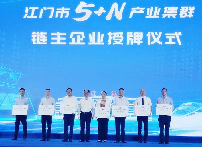 江門市副市長蔡德威在大會上作《江門市培育發展“5+N”產業集群行動方案》及相關政策措施主要內容的說明。他表示,江門圍繞廣東省20個戰略性產業集群的重點領域,結合本地產業特色,共計收集了2500家工業企業的基礎數據,通過走訪、座談、討論后反復論證,最終確定將“5+N”產業集群確定為江門重點培育發展方向,有針對性地打造14條產業鏈。 《江門市培育發展“5+N”產業集群行動方案》提出,力爭到2025年,新材料、大健康(含食品)、新一代信息技術、金屬制品等4個產業集群產值超1000億元,高端裝備制造、新能源汽車及零部件、家電、造紙和印刷、紡織服裝、摩托車等6個產業集群產值超500億元。 蔡德威透露,江門針對實際情況選出了“鏈長”和“鏈主”,共同推進產業集群的培育發展。其中,“鏈長”主要負責組織統籌相關產業集群(產業鏈)的發展規劃,協調解決產業集群發展中的困難和問題。“鏈主”則負責發揮企業在行業的影響力,推動產業鏈的資源整合和技術創新,利用自身優勢以商招商,促進產業聚集發展,壯大產業集群。 為充分發揮“鏈主”企業的引領作用,江門從企業規模、行業地位、帶動能力、研發實力等方面設置十大認定標準,經初步評定,選出了第一批7家“鏈主”企業,以及一批后備“鏈主”企業。造紙和印刷產業集群鏈主企業為亞太森博(廣東)紙業有限公司、維達紙業(中國)有限公司;家電產業集群鏈主企業為海信(廣東)空調有限公司;大健康產業集群鏈主企業為李錦記(新會)食品有限公司;新能源汽車及零部件產業集群鏈主企業為廣東富華重工;摩托車產業集群鏈主企業為江門市大長江集團有限公司;高端裝備制造產業集群鏈主企業為中車廣東軌道交通車輛有限公司。