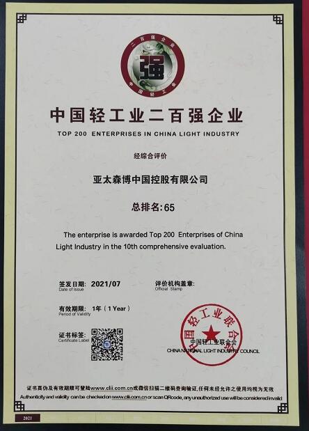 論壇發布了“中國輕工業二百強企業”榜單,亞太森博憑借優秀的綜合實力榮登榜單并名列第65位,成為制漿造紙行業的杰出代表。中國輕工業聯合會是輕工業全國性、綜合性、具有服務和管理職能的工業性組織。每年公布的榜單在行業中具有權威性和廣泛影響力,是衡量中國輕工業企業發展活力的重要標準。其中“中國輕工業二百強企業”榜單主要評價企業的綜合實力,要求企業不僅發展均衡,而且要具備較強的市場活力。
