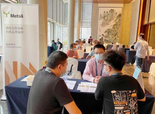 第十一屆世界木材與木制品大會于2021年9月15-16日在廣西南寧召開,350余位來自政府高層、知名企業、國際組織的專家和代表出席了這一國際木材貿易商在中國的年度聚會。芬林芬寶鋸材業務團隊參與了此次盛會。 本次大會的主題為:“開放融通,共同發展”。大會議程分為三部分。 第一部分 邀請到了來自發改委、廣西壯族自治區林業局、國家信息中心經濟預測部等政府部門代表就中國國內外經濟形勢,以及在新冠疫情影響下全球木材貿易投資,全球大宗商品運輸情況等方面做了主旨演講。 第二部分 為國際行情分析,以線上線下結合的形式邀請來自美國、加拿大、烏拉圭、澳大利亞、新西蘭等國家的林業專家和咨詢公司代表就各區域目前階段木材供應和銷售情況對未來木材行業供求趨勢做出解讀。 第三部分 大會專設貿易洽談環節供企業面對面交流。芬林芬寶鋸材業務團隊和與會企業代表們進行了深入交流,向行業同仁介紹了芬林芬寶的鋸材產品和服務。