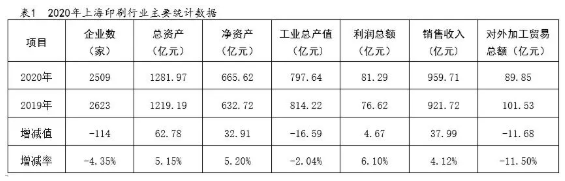 2020年,上海印刷業總資產達到1281.97億元,比2019年增長5.15%,上海印刷業全行業工業總產值為797.64億元,銷售收入和利潤總額雙雙呈現增長。 基本概況 2020年上海印刷業不僅在抗擊疫情中發揮出中流砥柱的作用,行業發展情況同樣超出預期。 截至2021年4月,上海通過年度報告的印刷企業共2509家(不含打印、復印企業),比2019年同口徑的2623家減少了114家,下降4.35%;相比2019年對2018年5.00%的下降率,企業數量減少的速度進一步降低,且減少的企業主要集中于年工業總產值為1000萬元以下的企業。 2020年,市場對于上海印刷業的發展表現出極大的信心,企業投資規模仍然進一步擴大。2020年,上海印刷企業總資產共計1281.97億元,比2019年增長5.15%,凈資產為665.62億元,比2019年增長5.20%。不難看出,投資已經大于當年的行業GDP增長。