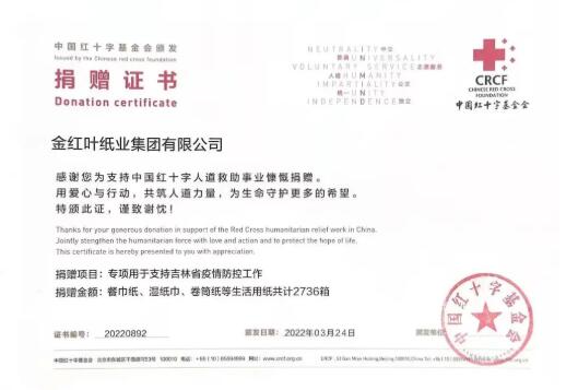 共克時艱 金紅葉助力吉林市、長春市精準(zhǔn)防疫 疫情無情,人間有愛。吉林市疫情爆發(fā)后,疫區(qū)群眾生活物資缺乏成為燃眉之急。3月23日,金紅葉紙業(yè)以最快速度集結(jié)物資,第一時間通過中國紅十字基金會向吉林市、長春市人民提供包含面巾紙、衛(wèi)生紙、紙手帕、餐巾紙、消毒濕巾等共計40萬的物資,助力醫(yī)院、學(xué)校精準(zhǔn)防疫,全力保障當(dāng)?shù)匾痪抗疫工作者及人民群眾的生活用紙所需。目前,這些承載著金光集團(tuán)責(zé)任和擔(dān)當(dāng)?shù)奈镔Y已陸續(xù)發(fā)往當(dāng)?shù)亍?/p>