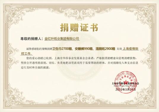 守“滬”春天 60萬元物資馳援上海市 上海戰(zhàn)“疫”眾志成城,金光守“滬”步履不停!為了支持上海市、關(guān)懷上海抗“疫”一線工作者,金光集團(tuán)APP(中國)攜手黃奕聰基金會,聯(lián)合旗下金紅葉紙業(yè)緊急籌措物資,通過上海僑聯(lián)向滬捐贈包括酒精消毒濕巾、抽紙、安睡褲、衛(wèi)生巾等共計60萬元的物資,馳援一線社區(qū)、醫(yī)院和學(xué)校,齊心協(xié)力援助上海市抗擊疫情。3月25日起,這些物資將源源不斷地運送至抗“疫”戰(zhàn)士們的手中。