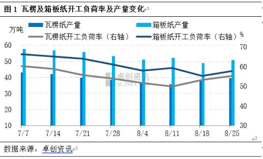 [導(dǎo)語] 進入8月份瓦楞及箱板紙市場供需兩端均呈現(xiàn)弱勢運行,規(guī)模紙廠停機消息頻發(fā),上游主動從生產(chǎn)端減量,來緩解供應(yīng)端壓力;而傳統(tǒng)中秋節(jié)訂單并沒有明顯起色,需求端整體仍顯疲軟。接下來從供需角度出發(fā)來分析一下市場走勢: 紙廠主動停機檢修,緩解供應(yīng)端壓力 進入下半年以來,瓦楞及箱板紙市場面臨較大的供應(yīng)壓力,紙價承壓明顯下行。因此上游紙廠主動停機檢修,來緩解供應(yīng)端壓力。截至8月25日,瓦楞紙開工負荷率為55.22%,較6月底開工負荷下滑5.44個百分點,產(chǎn)量較6月底減少8.65%;箱板紙開工負荷率為57.68%,較6月底開工負荷下滑7.94個百分點,產(chǎn)量較6月底減少10.39%。紙廠開工負荷下滑后,市場現(xiàn)貨供應(yīng)量減少,供應(yīng)端壓力稍有緩解,但多數(shù)紙廠前期庫存處于高位,因此整體供應(yīng)壓力仍存,對紙價仍形成一定利空影響。