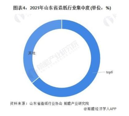 山東造紙業集中度較高 具體到企業來看,自2003年晨鳴集團躍升全省第一家年產100萬噸大企業以來,晨鳴、太陽、華泰、博匯、亞太森博漿紙、世紀陽光相繼成為年產漿紙超百萬噸的大型集團,企業管理創新、產品產能品質、生產工藝、技術裝備、市場拓展、信息化數字化轉型等方面,一直引領山東乃至全國造紙行業的持續發展。2021年6家企業紙及紙板產量占全省的64%。