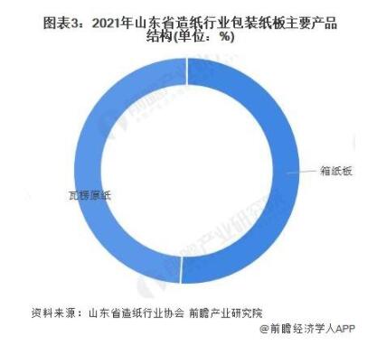 從包裝紙板產品產量結構來看,目前,山東省主要生產包裝用紙產品為箱紙板及瓦楞原紙。2021年,山東省箱紙板產量為280萬噸,占全省包裝紙板總產量的50.91%;瓦楞原紙產量為270萬噸,占全省包裝紙板總產量的49.09%。