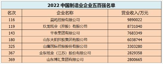 同時(shí)多家造紙企業(yè)上榜中國(guó)制造業(yè)500強(qiáng)。