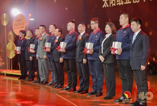 文化為帆,再啟新程。千億強企環節還進行了太陽紙業企業文化升級發布,升級企業文化是太陽紙業落實黨的二十大精神,接軌新時代的重要開始,是企業與時代同步,與時俱進的具體行動。 太陽紙業慶祝成立四十周年的環節由“輝煌”、“榮光”、“遠方”和“篇章”四個部分組成,通過一個個宏大的視頻、用一幕幕感人的畫面、一段段真情流露的采訪,展示了太陽紙業從艱苦創業到行業領先,從快速增長到高質量發展,從布局“一帶一路”走向國際,再到向海發展揚帆廣西,四十年的成長始終與國家和時代的命運緊密相連的歷程和成就,總結了太陽紙業每一步的發展都與國家的發展同頻共振,與中華民族走向偉大復興的歷史進程緊密相連的經驗和過程。 “今天,這里的每一個名字都是閃光的,每一個太陽人都是光榮的!”在“榮光”部分,公司創始人李洪信董事長飽含深情面向全體員工發表“致敬太陽人”的致辭,成為全場最具人氣的高潮。慶典第三部分展示激情四溢的青春太陽、溫暖如家的幸福太陽、“一帶一路”的國際太陽和未來篇章的壯美圖景,讓全體太陽人在充滿希望的遠方,看到一顆最美的太陽。