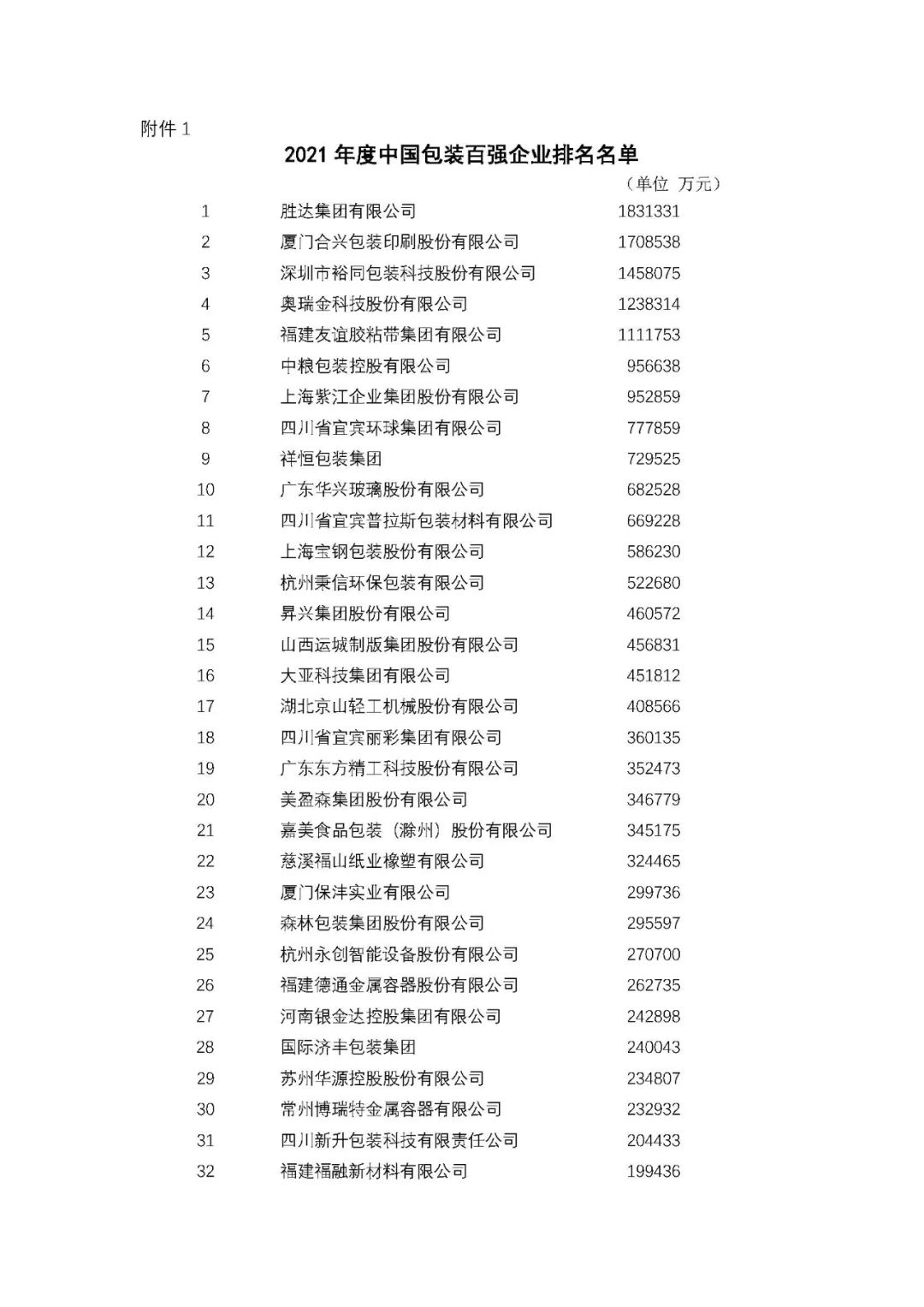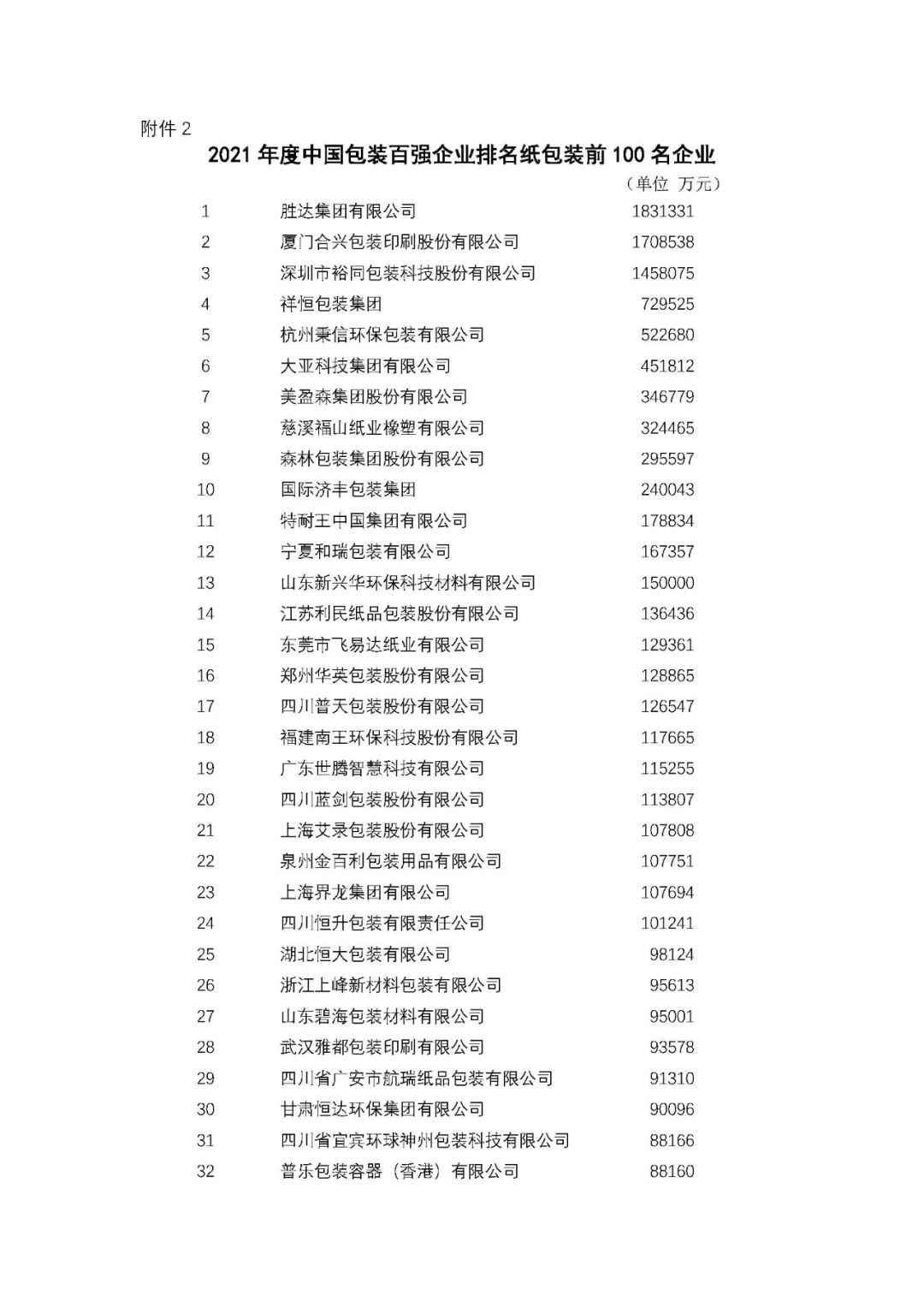 2021年度中國包裝百強企業排名:紙包裝企業前100強