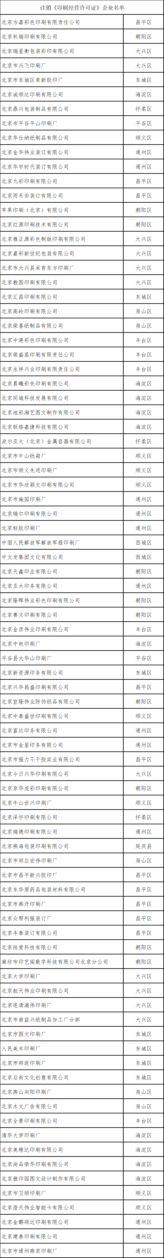 附件:注銷《印刷經(jīng)營(yíng)許可證》企業(yè)名單
