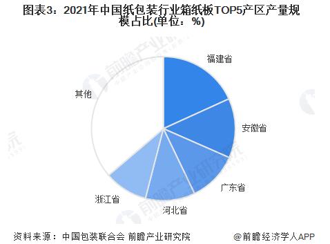 中國箱紙板產量前五大省市依次是福建、安徽、廣東、河北、浙江,前五大省市產量規模合計占比63.79%。其中,福建省2021年產量達到306.19萬噸,占據全國18.22%,產量規模位居全國第一。
