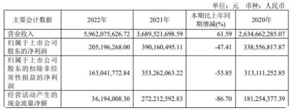 4月20日,五洲特紙(605007)近日發(fā)布2022年年度報(bào)告,報(bào)告期內(nèi)公司實(shí)現(xiàn)營(yíng)業(yè)收入5,962,075,626.72元,同比增長(zhǎng)61.59%;歸屬于上市公司股東的凈利潤(rùn)205,196,268.00元,同比下滑47.41%。