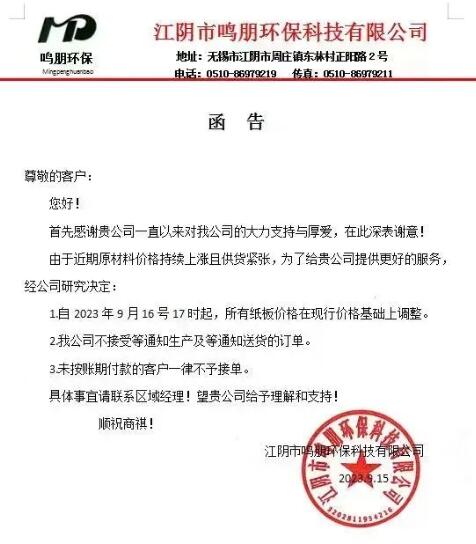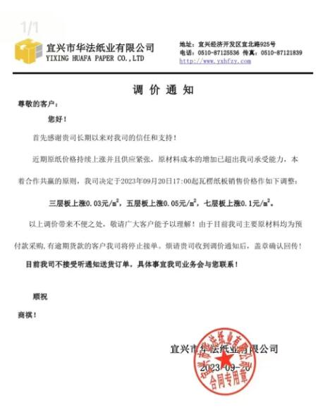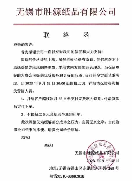 東莞玖龍:9月22日零點(diǎn)起,所有再生紙上調(diào)100元/噸,美元上調(diào)12美元/噸;所有瓦紙上調(diào)50元/噸,美元上調(diào)6美元/噸;所有白板紙上調(diào)100元/噸,美元價(jià)格上調(diào)12美元/噸。