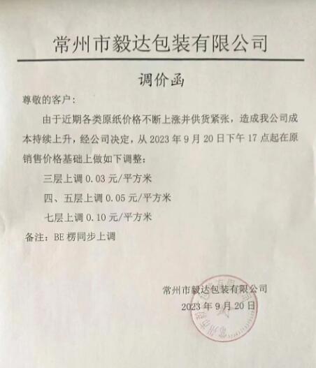 泉州玖龍:9月22日價(jià)格調(diào)整計(jì)劃,再生牛卡上調(diào)100元/噸,地牛、瓦楞紙上調(diào)50元/噸。