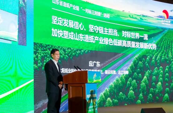 在“‘鏈主’分享,對標提升”環節,應廣東以《堅定發展信心、堅守鏈主擔當、對標世界一流加快塑成山東造紙產業綠色低碳高質量發展新優勢》為題作經驗分享。他表示,在各級黨委、政府的堅強領導下,太陽紙業堅定不移聽黨話、感黨恩、跟黨走,緊緊圍繞人民對美好生活的需要,面向造紙產業創新發展前沿,錨定綠色低碳發展方向,與國家改革開放和新時代發展同頻共振,成長為全球先進的林漿紙一體化跨國企業。