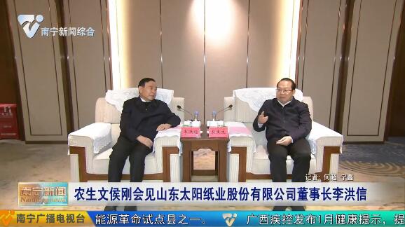 農生文書記、侯剛市長對李洪信董事長一行表示歡迎,對南寧太陽紙業林漿紙一體化技改及配套產業園項目建設取得的進展成效表示充分肯定。農生文書記表示,當前,南寧市正深入學習貫徹習近平總書記對廣西重大方略要求,牢固樹立綠水青山就是金山銀山的理念,充分發揮林業資源豐富的優勢,大力發展林漿紙、綠色高端家具家居等產業,著力打造千億林產品加工產業,推進林產業富民增收,不斷開創林業高質量發展新局面。太陽紙業作為全球先進的跨國造紙集團和中國造紙行業領軍企業,在南寧的制漿造紙項目通過實施技改升級,實現了造紙產業向高端化、智能化、綠色化發展,成為盤活資產、傳統產業轉型、綠色低碳發展的典型案例。希望太陽紙業繼續發揮自身優勢,搶抓平陸運河建設等機遇,利用好南寧東部新城這個大舞臺,加大投資力度、拓展合作領域,加快推動在邕新項目開工建設,帶動更多配套產業落戶,實現造紙產業集群式發展。南寧市將持續優化營商環境,進一步做好服務保障工作,全力支持太陽紙業在邕更好發展,實現互惠互利、合作共贏。