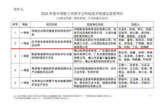 2024新年伊始,中國輕工業聯合會(簡稱“中國輕工聯”)公布2023年度科學技術獎名單。其中,山東太陽控股集團有限公司下屬子公司萬國紙業太陽白卡紙有限公司、山東國際紙業太陽紙板有限公司和華南理工大學研發的“白卡紙多梯度防偽包裝技術研發及應用”成果榮獲中國輕工業聯合會科學技術進步一等獎。