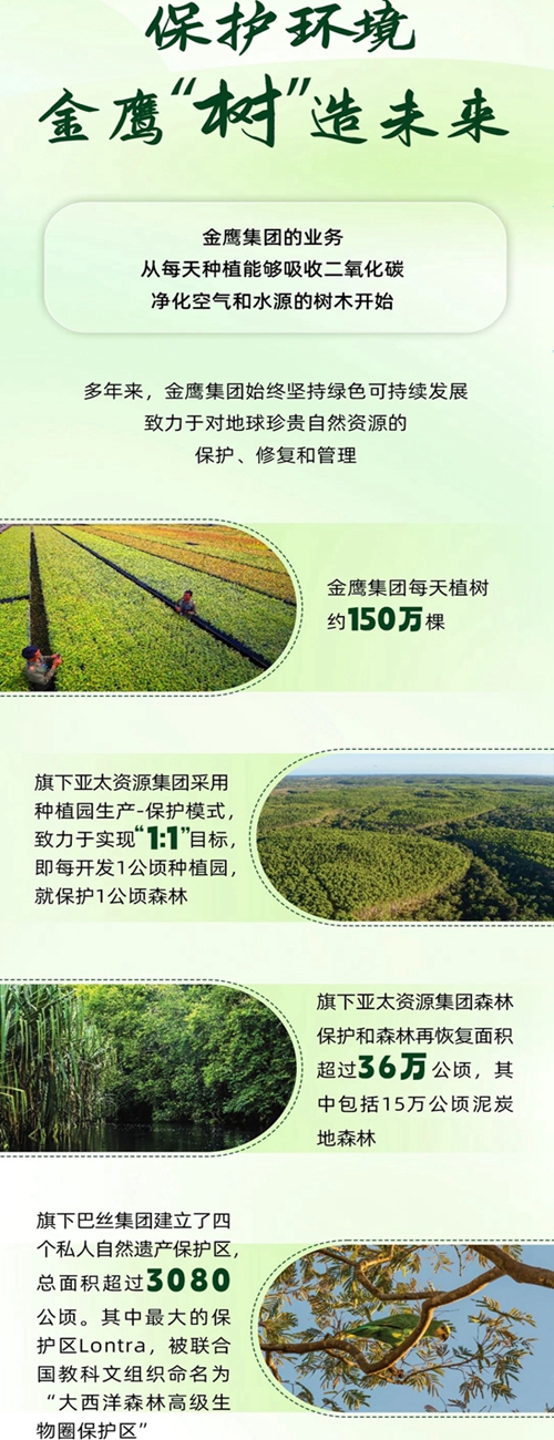 樹木樹人百年計(jì),利民利國一片情。作為一家漿紙企業(yè),亞太森博一直與“樹”結(jié)緣,并致力于推動(dòng)整個(gè)價(jià)值鏈綠色可持續(xù)發(fā)展。金鷹集團(tuán)每天都會(huì)種植約150萬棵樹,并通過可持續(xù)的經(jīng)營模式為人們提供各類紙質(zhì)產(chǎn)品,以滿足人們美好生活的需求。